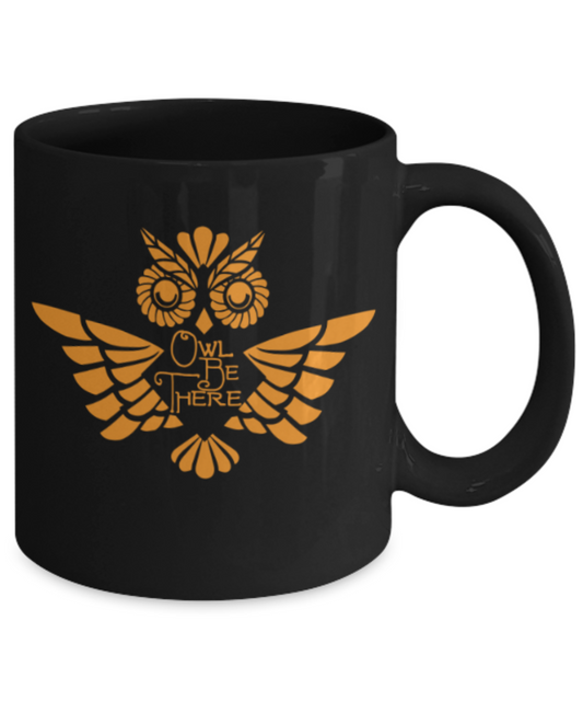 Gift gor animals lovers , Owl Be there - Black Coffee Mug Porcelain Tea Cup 11 oz - Great Gift
