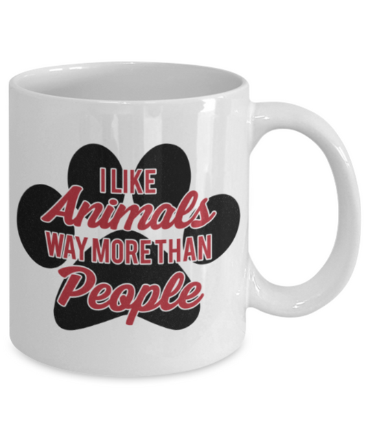 Gift gor dog lovers , I like animals way more than people - White Coffee Mug Porcelain Tea Cup 11 oz - Great Gift