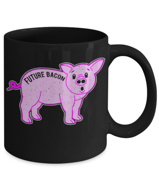 Gift gor Animals lovers , Future Bacon - Black Coffee Mug Porcelain Tea Cup 11 oz - Great Gift