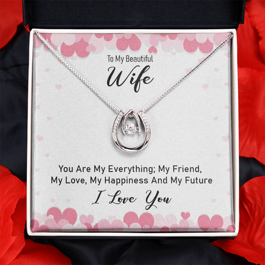 To My Beautiful Wife Birthday Gift Necklace, Anniversary Gift Necklace For Wife, Gift From Husband, Christmas Gift Lucky In Love Jewelry Gift
