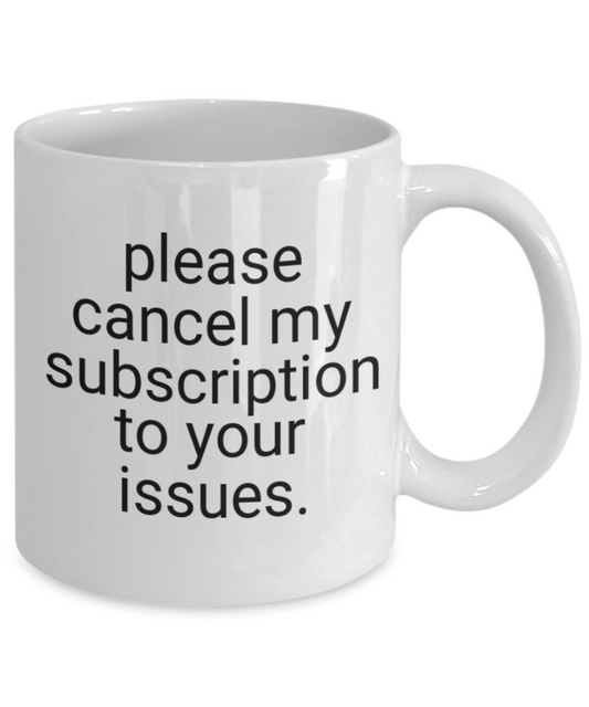 Please Cancel My Subscription To Your Issues, Bff Mug, Wife, Husband, Anniversary, Birthday Gift-White Ceramic Coffee Mug 11 oz