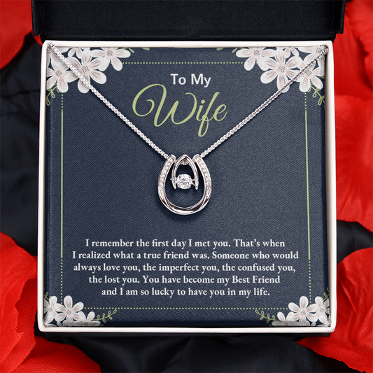 Wife My True Friend Gift Necklace, Birthday Gift Necklace For Wife, Lucky In Love Gift Necklace For Wife, Anniversary, Valentines Gift from Husband