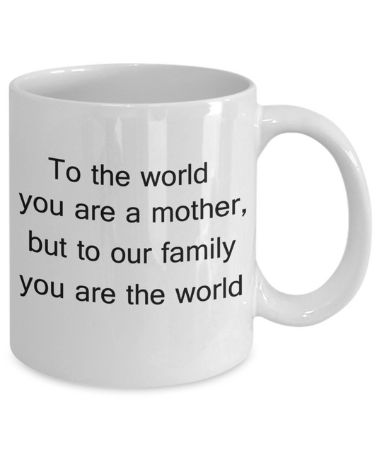 Mothers gift special love heart poem mug - To the world you are a mother, but to our family you are the world - White Porcelain Coffee Mug Cute Ceramic Cup 11 oz