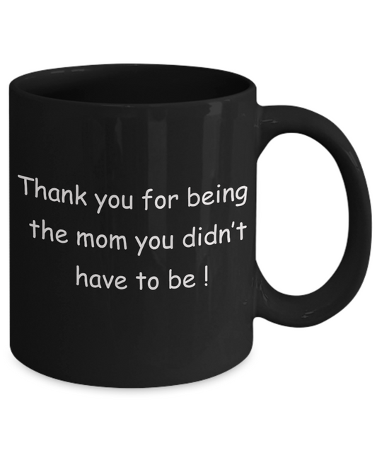 Mothers gift special love heart poem mug - Thank you for being the Mom you didn't have to be - Black Porcelain Coffee Mug Cute Ceramic Cup 11 oz
