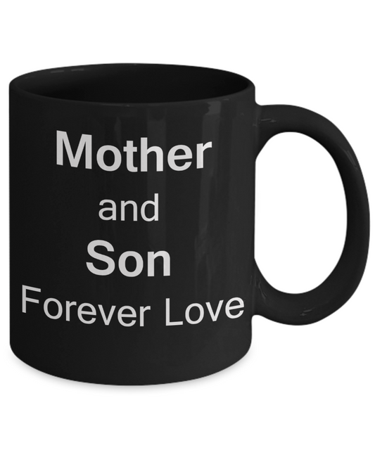 Mothers gift special love heart poem mug - Mother & Son Forever Love - Black Porcelain Coffee Mug Cute Ceramic Cup 11 oz