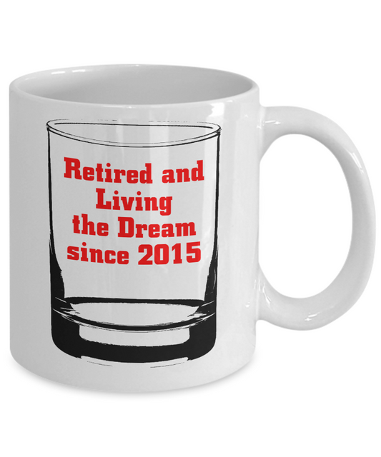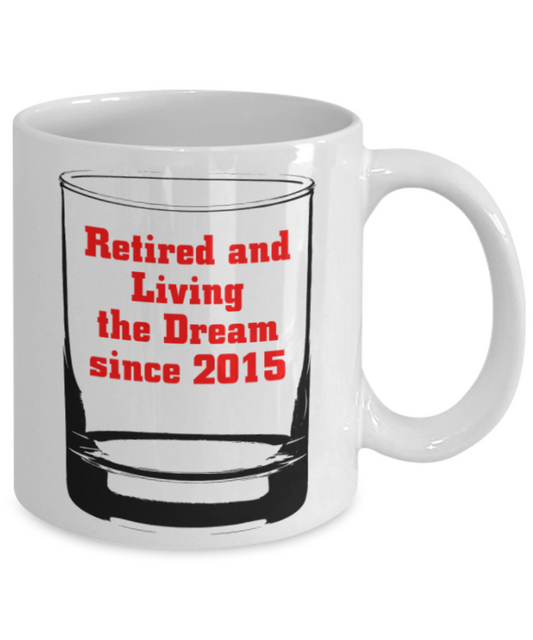 Funny Wine Lover Coffee mug, Retired And Living The Dream Since 2015-White Porcelain Coffee Mug 11 oz