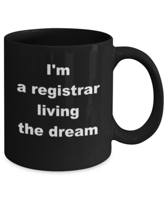 Im a registrar living the dream - Funny Black Porcelain Coffee Mug Cute Ceramic Cup 11 oz