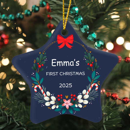 Personalized Baby's First Christmas Ornament Gift 2025, High Gloss Star Ornament, Custom Name Gift For New Born Boy or Girl