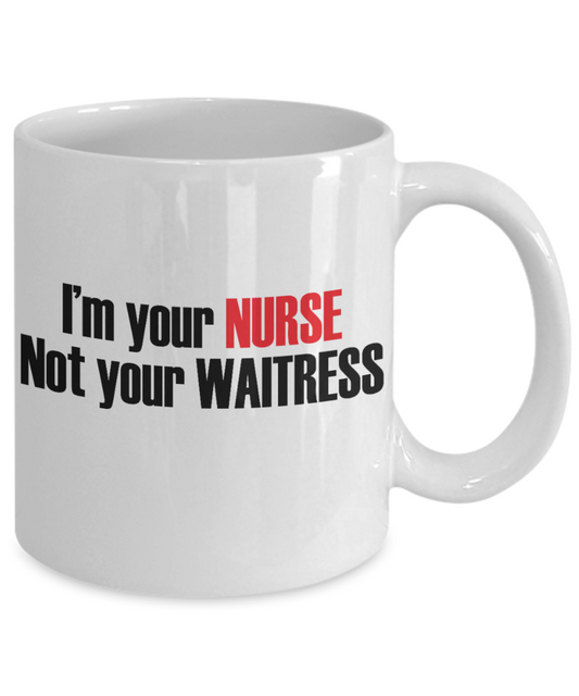 Nurse Appreciation Funny Gift Coffee mug, I Am Your Nurse Not Your Waitress -White Porcelain Coffee Mug 11 oz for Girlfriend, Father, Boyfriend, Wife, Husband,Nurse,medical, Nursing , Student