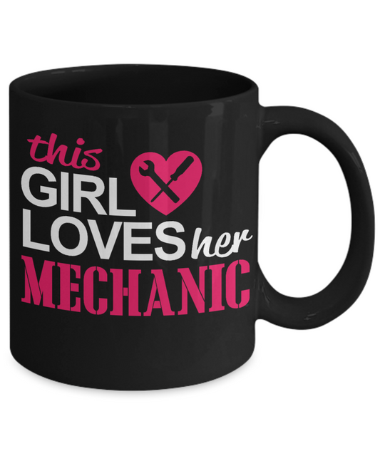 I Am Mechanic Funny Gift Coffee Mug, This Girl Loves Her Mechanic -Black Porcelain Coffee Mug 11 oz for Girlfriend, Boyfriend, Wife, Husband, Mechanic
