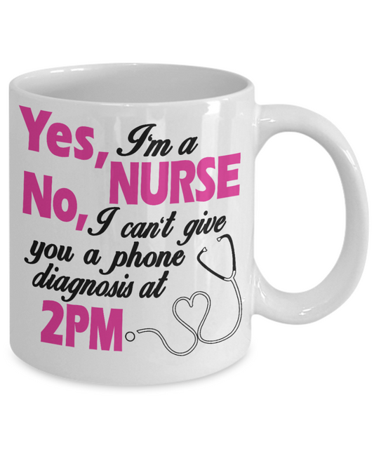 Nurse Graduation Gift Coffee mug, Yes I'm A Nurse No, I Can't Give You A Phone Diagnosis At 2 PM -White Porcelain Coffee Mug 11 oz for Girlfriend, Father, Boyfriend, Wife, Husband, Nurse, medical, Nursing , Student