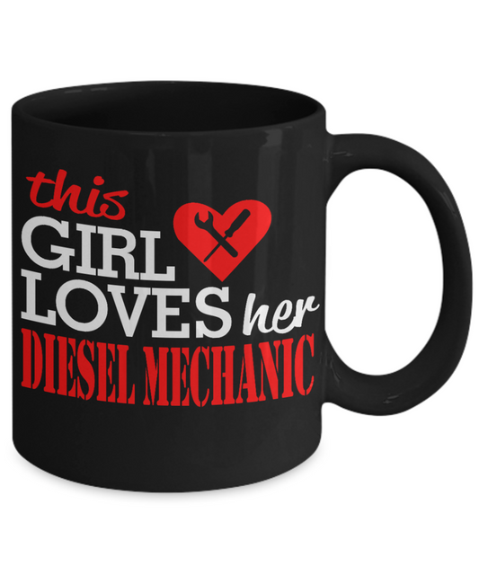 I Am Mechanic Funny Gift Coffee Mug, This Girl Loves Her Diesel Mechanic -Black Porcelain Coffee Mug 11 oz for Girlfriend, Father, Boyfriend, Wife, Husband, Mechanic, Car Lover