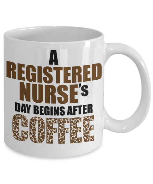 Nurse Appreciation Gift Coffee mug, A Registered Nurse's Day Begins After Coffee -White Porcelain Coffee Mug 11 oz for Girlfriend, Father, Boyfriend, Wife, Husband,Nurse,medical, Nursing , Student