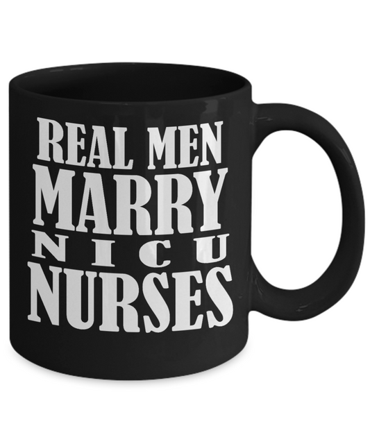 Nurse Appreciation Gift Coffee mug, Real Men Marry NICU Nurses -Black Porcelain Coffee Mug 11 oz for Girlfriend, Boyfriend, Wife, Husband, Nurse, medical, Nursing , Student