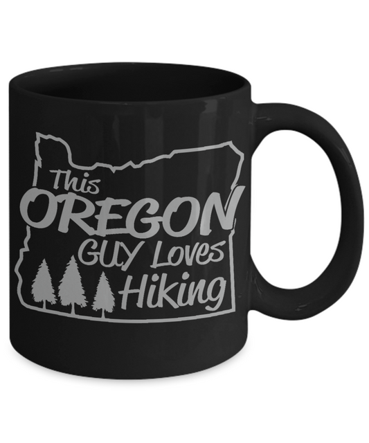 Hiker Camping Gift Coffee Mug, This Oregon Guy Loves Hiking-Black Porcelain Coffee Mug 11 oz For Father,Brother, Boyfriend,Hiker,Camping mug