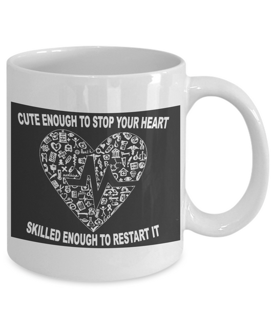 Nurse Appreciation Gift Coffee mug, Cute Enough To Stop Your Heart Skilled Enough To Restart It -White Porcelain Coffee Mug 11 oz for Girlfriend, Boyfriend, Wife, Nurse, medical, Nursing, Student