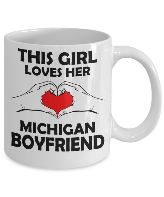 Michigan Love Gift Coffee Mug, This Girl Loves Her Michigan Boyfriend-White Porcelain Coffee Mug 11 oz