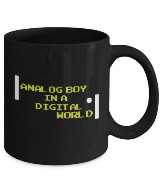 Pop culture lovers mugs , Analog boy in a Digital world - Black Coffee Mug Porcelain Tea Cup 11 oz - Great Gift