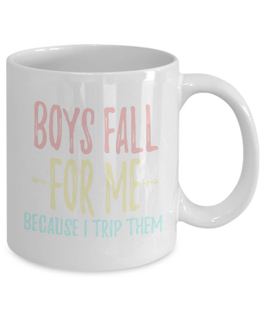 Boys Fall For Me Because I Trip Them- White Porcelain Coffee Mug 11 Oz Funny Quotes Coffee Mug