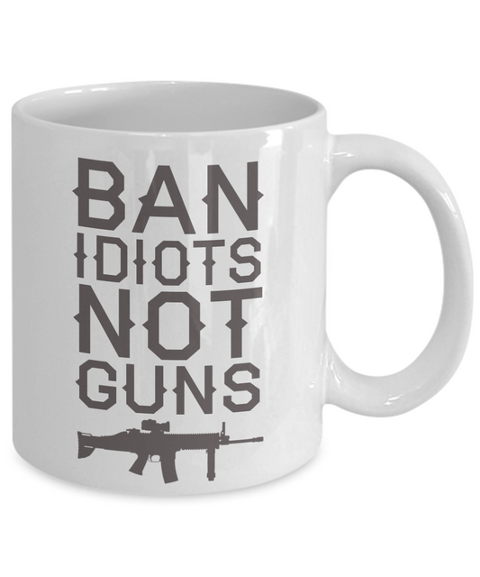 2nd Amendment Coffee Mug, Ban Idiots Not Guns-White Porcelain Coffee Mug 11 oz for Husband, Dad, Boyfriend,Grandpa