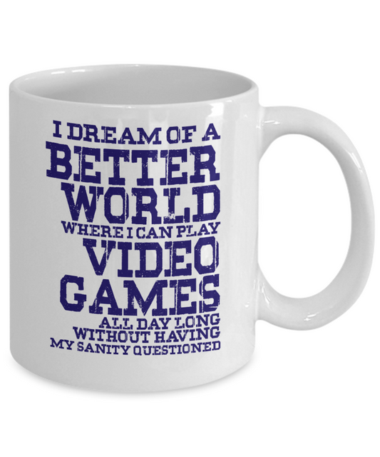 Gameboy Coffee Mug, I Dream Of a Better World Where I Can Play Video Games All Day-White Porcelain Coffee Mug 11 oz
