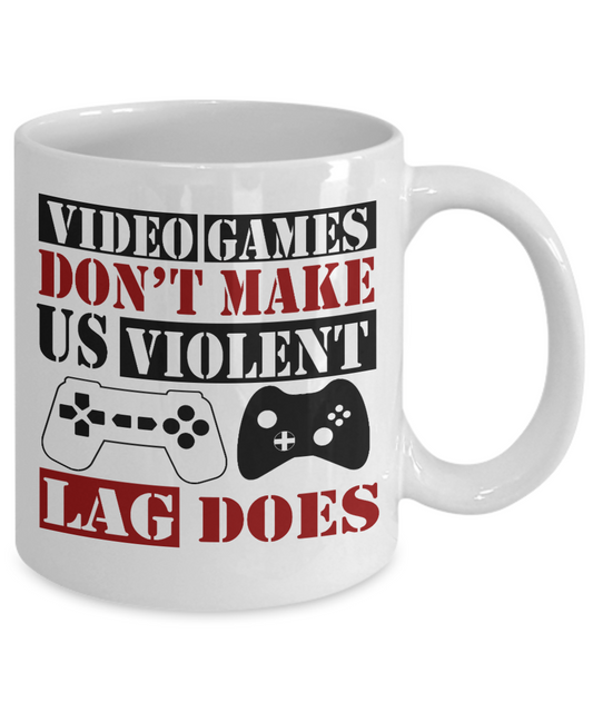 Gameboy Coffee Mug, Video Games Don't Make Us Violent Lag Does-White Porcelain Coffee Mug 11 oz for Gamer, son, Daughter, boyfriend