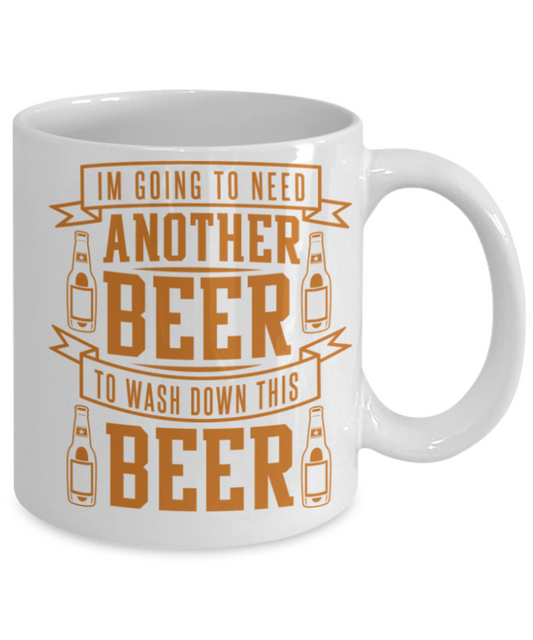 Beer Lovers Gifts , I am going to need another beer - White Coffee Mug Porcelain Tea Cup 11 oz - Great Gift