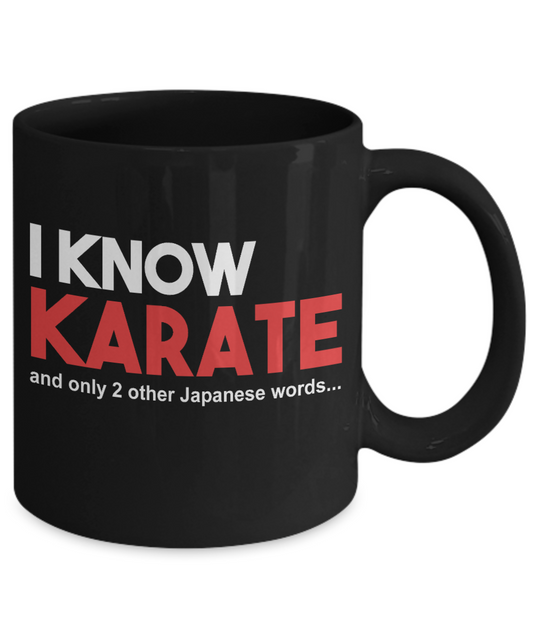 Martial Arts Coffee Mug, I Know Karate And Only 2 Other Japanese Words-Black Porcelain Coffee Mug 11 oz