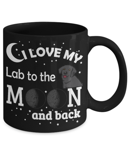 Personalized Dog Lover Gift Coffee mug,I Love My Lab To The Moon And Back-Black Porcelain Coffee Mug 11 oz