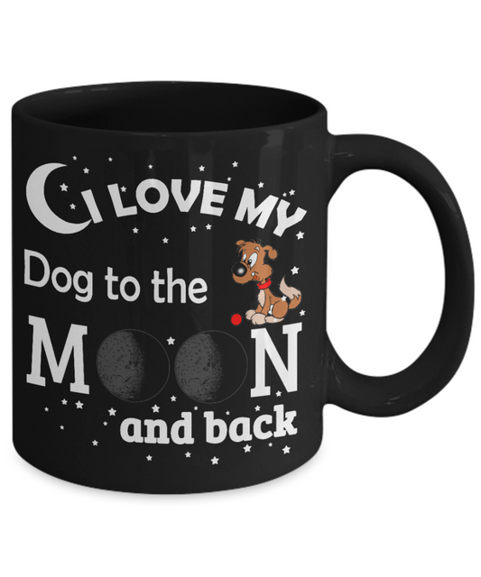 Personalized Dog Lover Gift Coffee mug,I Love My Dog To The Moon And Back-Black Porcelain Coffee Mug 11 oz
