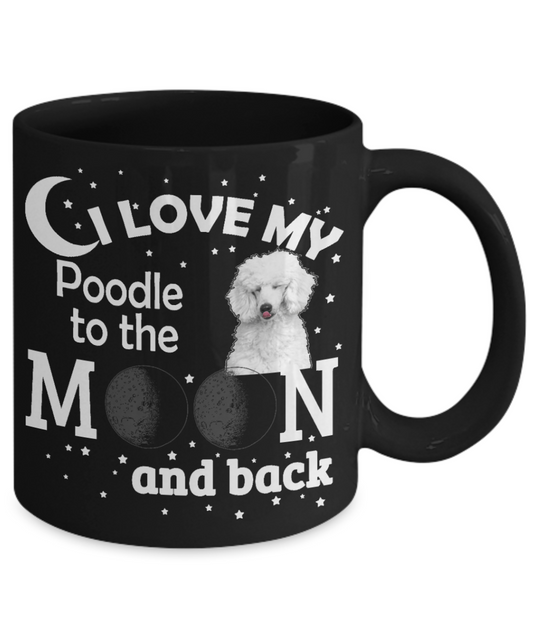 Personalized Dog Lover Gift Coffee mug,I Love My Poodle To The Moon And Back-Black Porcelain Coffee Mug 11 oz