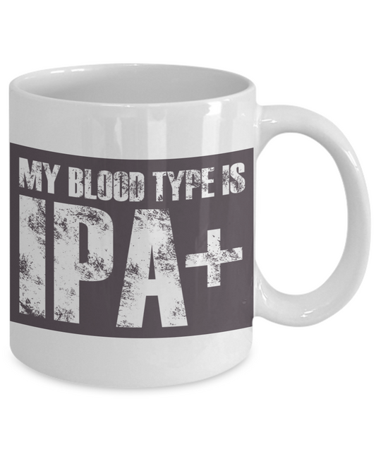 Beer Lover Personalized Coffee Mug, My Blood Type Is IPA+ -White Porcelain Coffee Mug 11 oz