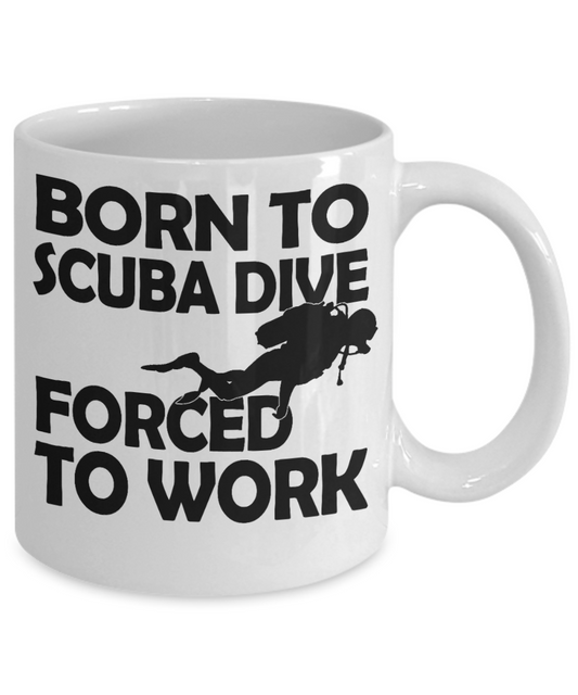 Scuba Diver Personalized Gift Coffee Mug, Born To Scuba Dive Forced To Work-White Porcelain Coffee Mug 11 oz