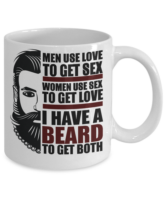 Beard Man Coffee Mug, Men Use Love To Get Sex Women Use Sex To Get Love I Have A Beard To Get Both-White Porcelain Coffee Mug 11 oz