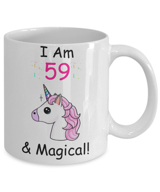 Unicorn Birthday gift 59th Birthday Gift for Women - I Am 59 & Magical Unicorn Mug - Funny White Porcelain Coffee 11 oz for Grandma, Mom, Sister, Best Friend, Women, Her - Born In 1961