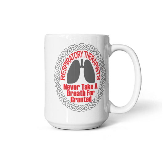 Best Respiratory Therapist Gift Coffee Mug, Respiratory Therapists Never Take A Breath For Granted -White Porcelain Coffee Mug 11 oz