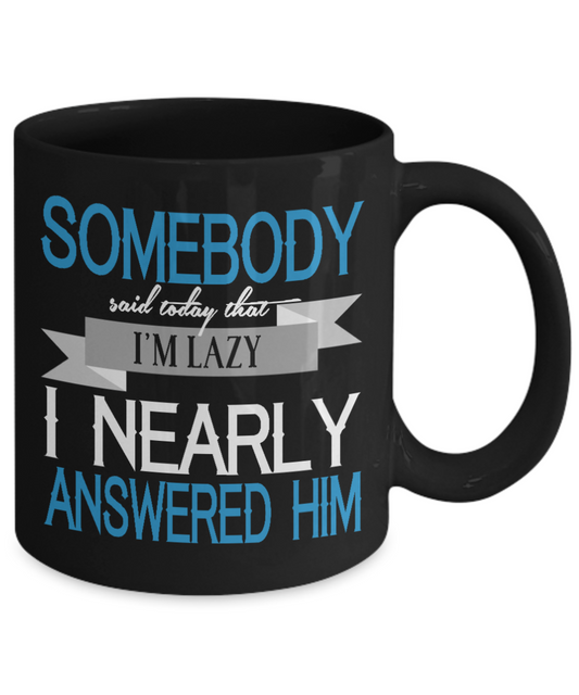 Somebody Said Today That I'm Lazy I Nearly Answered Him- Black Porcelain Coffee Mug 11 Oz Funny Quotes Coffee Mug