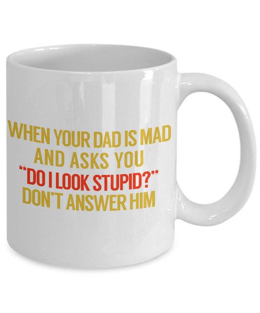 When Your Dad Is Mad And Asks You Do I Look Stupid Don't Answer Him- White Porcelain Coffee Mug 11 Oz Funny Quotes Coffee Mug