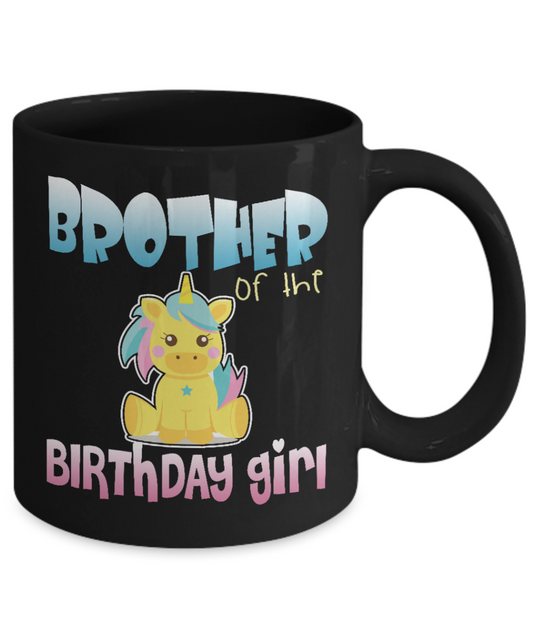 Unicorn Birthday Gift Coffee Mug, Brother Of The Birthday Girl- Black Porcelain Coffee Mug 11 Oz Funny Quotes Coffee Mug