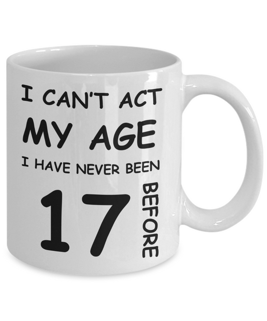 17th Birthday Gift for Women & Men - I can't act my Age, I have never been 17 Before - Funny White Porcelain Coffee 11 oz for Grandma, Mom, Sister, Best Friend, Women, Her - Born In 2003