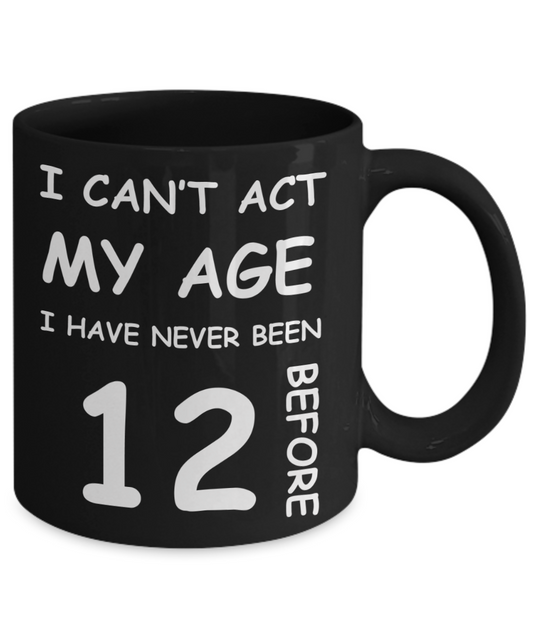 12th Birthday Gift for Women & Men - I can't act my Age, I have never been 12 Before - Black Porcelain Coffee 11 oz for Grandma, Mom, Sister, Best Friend, Women, Her - Born In 2008