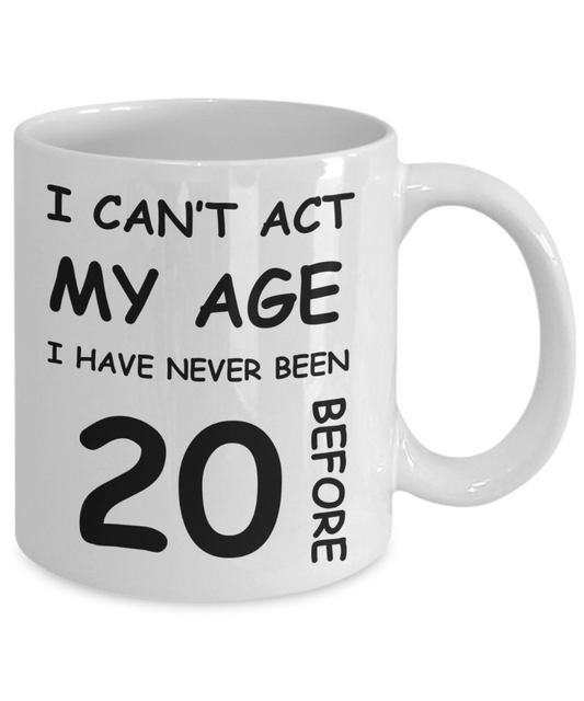 20th Birthday Gift for Women & Men - I can't act my Age, I have never been 20 Before - Funny White Porcelain Coffee 11 oz for Grandma, Mom, Sister, Best Friend, Women, Her - Born In 2000