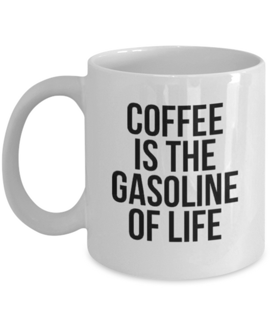 Coffee Is the Gasoline of the Life, Inspirational Quotes Coffee Mug, Coffee Lover Gift Mug- White Ceramic Coffee Mug 11 Oz