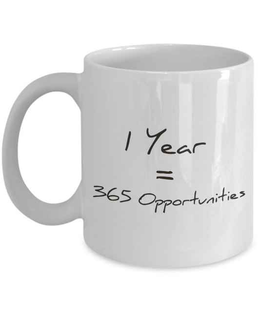 Morning Coffee Mug, Motivational Gift Coffee Mug, Inspirational Coffee Mug, One Year 365 Opportunities, Birthday Gift- 11oz Ceramic Coffee Mug
