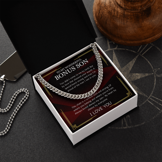 Bonus Son Gift, Birthday Gift For Bonus Son, Cuban Chain Stepson Birthday Gift, Graduation, Christmas Gift, Stepchild Gift, Step Kid Gift