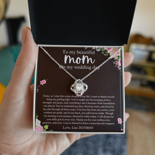 To My Mom On My Wedding Day, Gift From Bride, Gift From Daughter, Wedding Day Gift Necklace For Mom, Love Knot Necklace