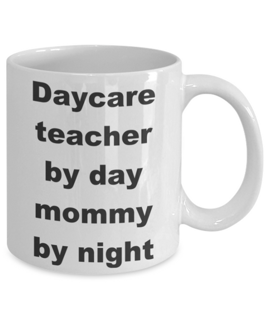Daycare teacher by day mommy by night - White Porcelain Coffee 11 oz