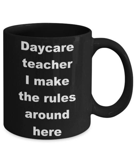 Daycare teacher I make the rules around here - Black Porcelain Coffee 11 oz