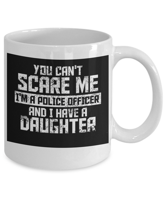 Police Officer Custom Gift Coffee mug, You Can't scare Me I'm A Police Officer And I Have A Daughter-White Porcelain Coffee Mug 11 oz