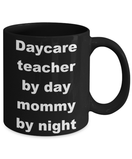 Daycare teacher by day mommy by night - Black Porcelain Coffee 11 oz